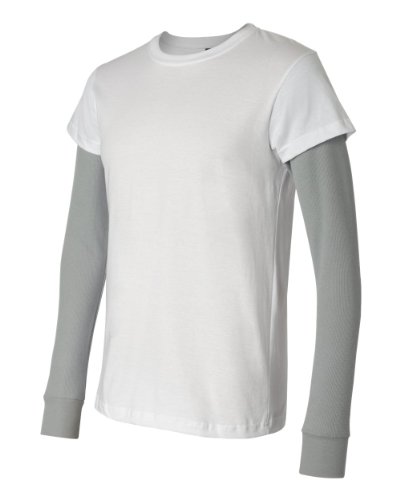 100% combed ringspun cotton jersey body; 60% cotton, 40% polyester, 40-singles mini thermal sleeves; trendy twist on a classic layered look; looks like a short-sleeve jersey crew & long-sleeve thermal; convenience and comfort of one single piece;