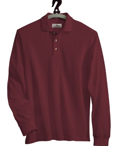 7.7 oz. 100% combed cotton pique knit long sleeve golf shirt. Constructed with a clean-finished placket and three horn buttons. Features rib knit cuffs, a square hemmed bottom with side vents and a half-moon yoke.