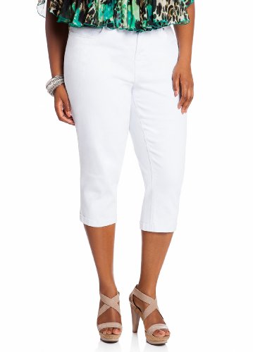 The perfect casual look for Spring or Summer! Plus size denim capri features a looped waistband that leads to a button front zip fly closure, a 5-pocket style, and is finished with cuffed detailing at legs. This denim capri is an essential must-have piece for your wardrobe.