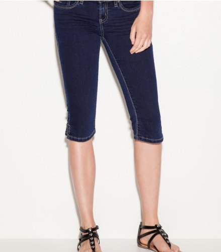 It's here: denim designed to accent your assets! Crafted with an ultra-flattering heart-shaped yoke, this sexy silhouette creates a perky, lifted look. Low rise Slim fit Capri leg Five-pocket construction Zip fly Heart-shaped back yoke creates a lifted look 7 ½" front rise 12 ¾" back rise 14" leg opening 16" inseam 77% Cotton, 21% Polyester, 2% Spandex Machine wash Measurements taken from a size 27 Women's > Jeans > capris